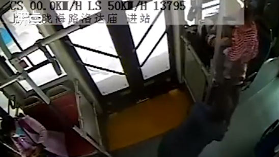 女子抱孩子上公交鞋带开了不方便系 女司机弯腰帮乘客系好