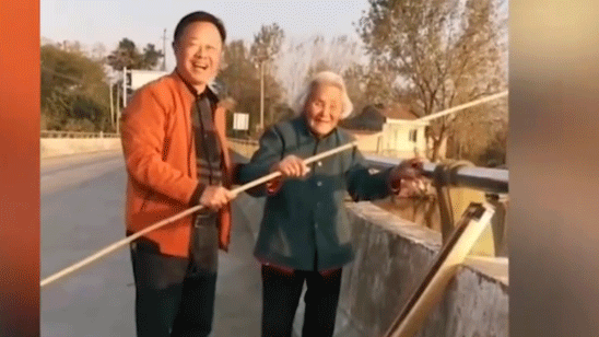 92岁奶奶60年钓龄每天用竹竿桥头钓鱼 钓友专程开车送全套装备