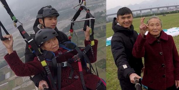 78岁老人第一次玩滑翔伞淡定自拍:比坐飞机好玩