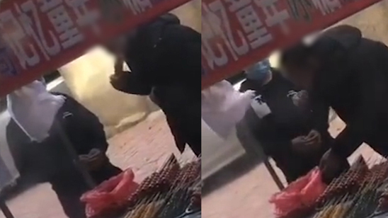 还有这种操作?糖葫芦小贩用唾液沾芝麻