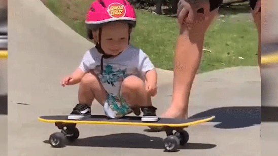一岁女婴穿着纸尿裤玩转滑板 蹲下站立平衡感超强 网友惊呆