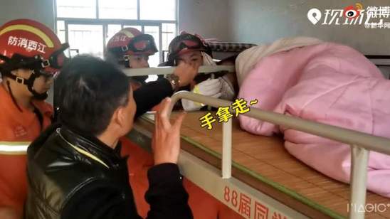 睡着睡着发现不对劲,学生睡觉头被卡铁床护栏