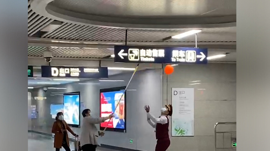 辛苦了!保洁阿姨地铁站持长杆追气球 可爱一幕萌翻网友