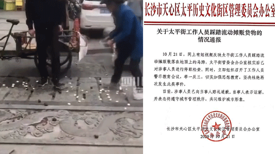 长沙通报“网传城管踩碎摊贩马蹄”:涉事人员道歉并停职