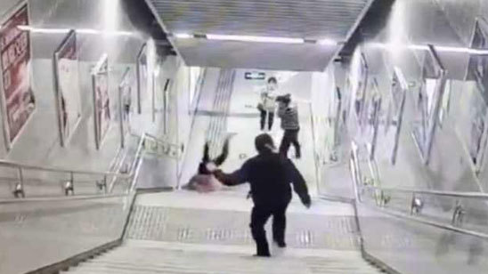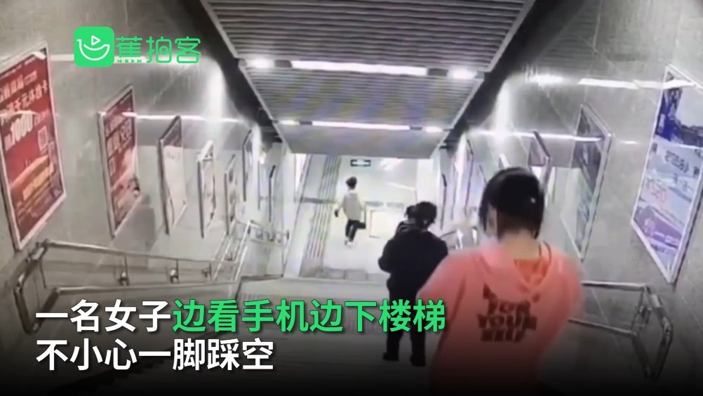 看着都疼!女孩地铁站下楼玩手机踩空摔倒 脸部受伤严重