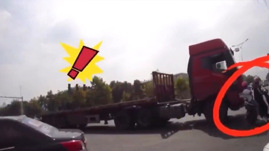 警惕大货车盲区!交警紧急吹哨救下处在货车盲区母女