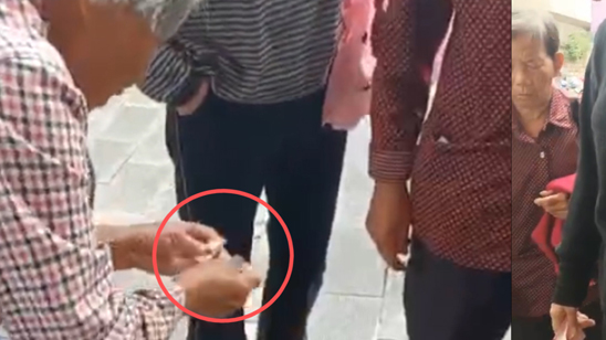 卖菜老奶奶收到一百元假币 拒收好心人捐款后撕毁假币