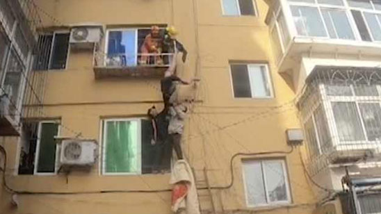 最帅托举!老汉坠楼倒挂3楼邻居托举20分钟紧急救人