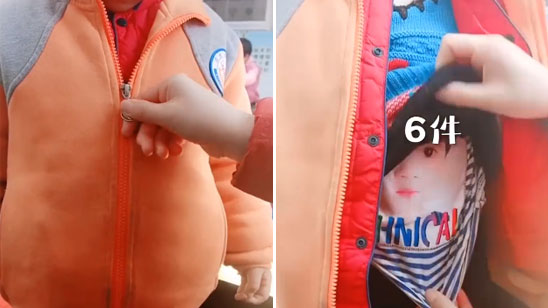 萌娃体态臃肿 老师拉开衣服一看穿7件 网友:有一种冷叫奶奶冷