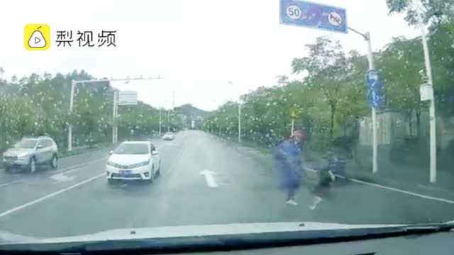 男子骑车时孩子从后座摔落,孩子爬起追赶反被一脚踹倒