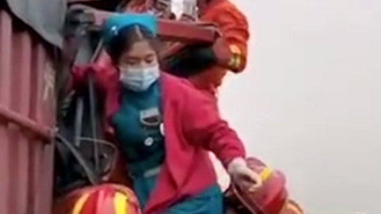 河南一高速出车祸司机被困 消防员用身体托举女护士紧急救治
