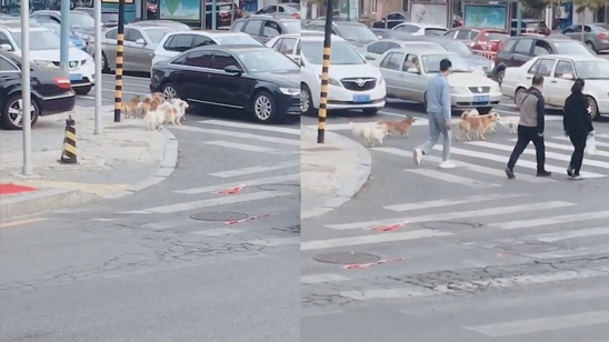 看懂了交通规则?5只狗狗在路口静静等红绿灯 网友:很有素质
