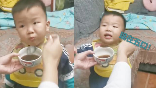 萌娃喝中药被宝妈套路 说好的喝6口硬是干干净净 怎么做到的?