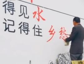 行走的打印机!大叔墙上写字如印刷体