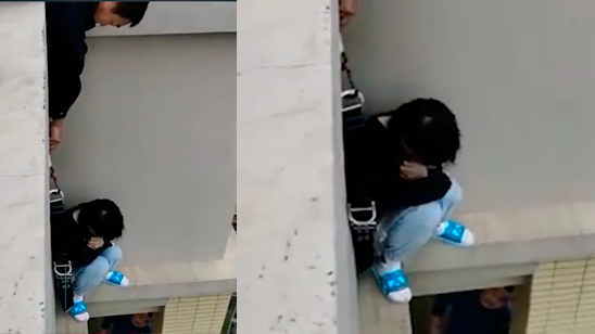 轻生少女蜷缩在29楼楼顶 民警用身体充当安全绳将其救回