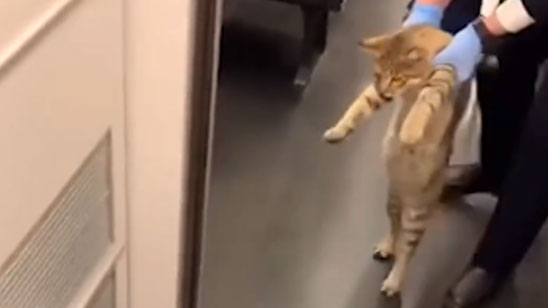 小猫蹭高铁被乘务员强制送下车 走出灵魂小碎步