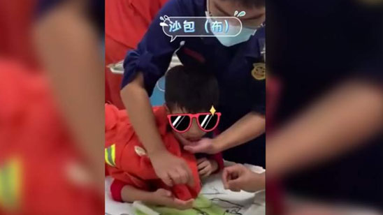 心疼又好笑!手指被卡话痨萌娃说消防员对不起