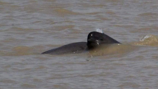 萌萌哒!江豚宝宝长江中探出脑袋戏水