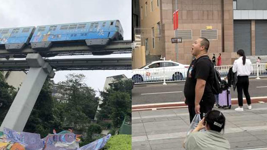 外地游客千里赴重庆打卡“轻轨穿楼” 各种凹造型拍“吃列车”照