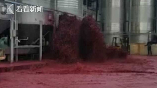 西班牙酒庄酿酒罐爆裂5万升红酒喷涌而出