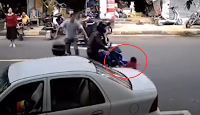 横穿马路时父亲走在前面不看娃 6秒后孩子在身后被撞飞