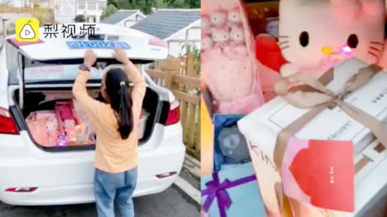 小女孩生日收满后备箱礼物后哭了 妈妈:二胎后有些冷落她