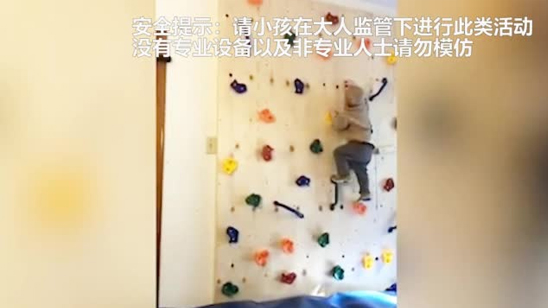 15个月大宝宝叼着奶嘴攀岩 动作超熟练 网友感叹:比我学的都专业