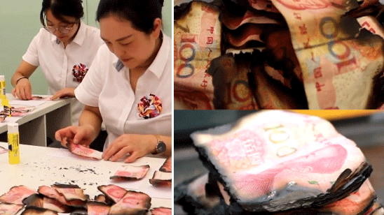 重庆一村民家失火250张百元钞被烧 银行3小时拼出234张