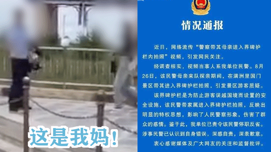 官方通报民警阻止游客拍照帮母亲合影:停职反省