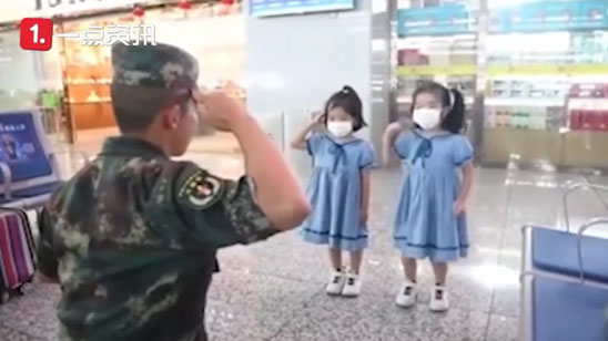 小女孩给军人叔叔敬礼 收到回礼后蹦蹦跳跳离开