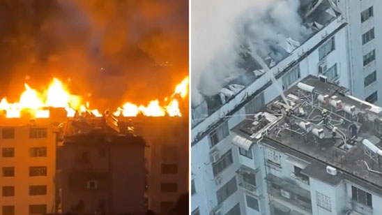 南宁星湖路一居民楼顶层烧成火海 消防派出9个灭火编队
