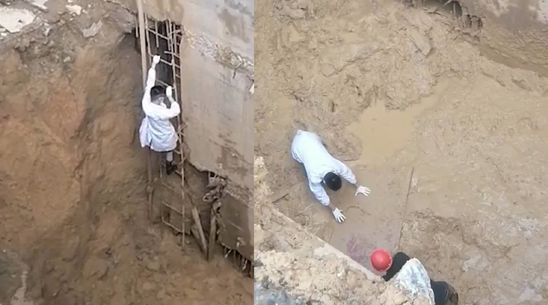 工人头部遭钢筋穿透受伤严重,急救医生淤泥中爬行救人