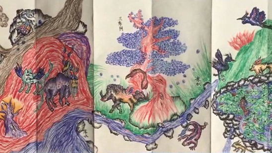 10岁男孩暑期画出36幅山海经