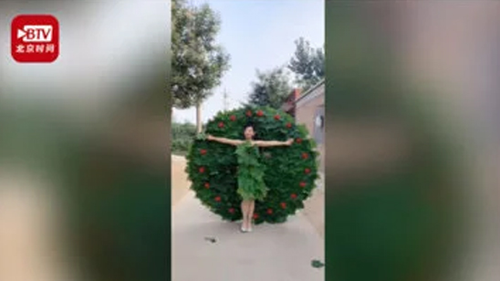 婆婆用树叶做孔雀开屏衣服给儿媳村头走秀 网友:婆婆手巧儿媳漂亮