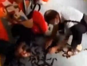 公交车上十几斤泥鳅满地爬 老伯抓个不停