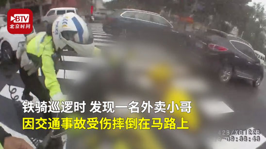 外卖小哥骑车受伤 铁骑小姐姐:我帮你送外卖