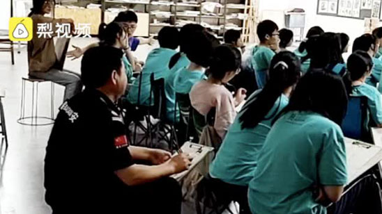 学校保安大叔旁听美术课自学画画:从小就爱画 想当美术老师