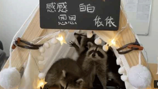 可爱翻倍!疫情后武汉迎来4胞胎小浣熊 取名谐音"感恩白衣"
