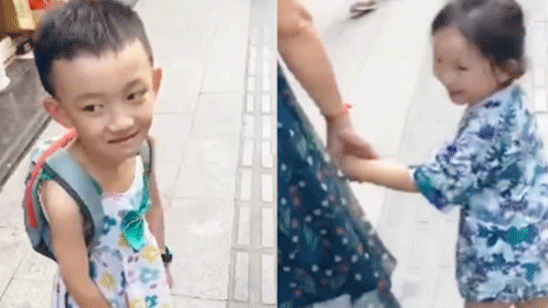 哥哥为保护妹妹与她互换衣服 穿着花裙子走在街上 一路含胸驼背逗笑网友