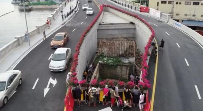 市民围观打卡广州“桥中房” 屋主淡定做饭
