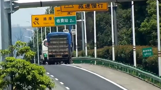乘客高速上推抛锚客车 货车司机保持百米距离一路护送