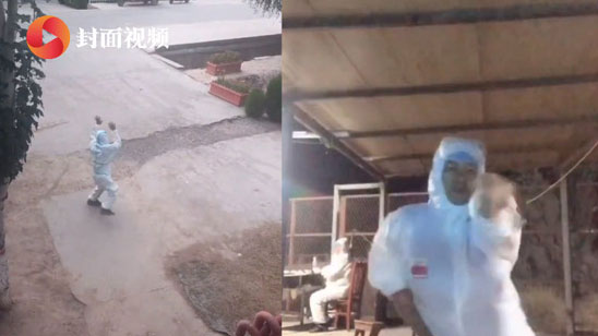 可可爱爱!防疫小哥值班间隙跳舞解压 发现被偷拍后害羞跑开