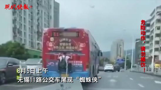 无锡11路公交车尾现“蜘蛛侠”,公交公司回应:车厢内很宽敞