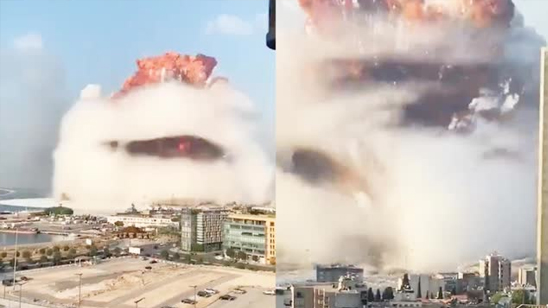 黎巴嫩首都突发大爆炸 巨大蘑菇云突然升起 拍摄者瞬间被冲击波掀翻