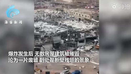 黎巴嫩首都爆炸后:无数房屋被毁,到处是废墟,一片悲惨景象
