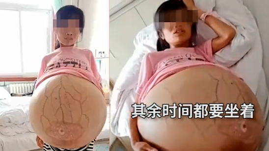 女子肚子莫名长成60斤巨球:没有查明病因只能坐着睡觉