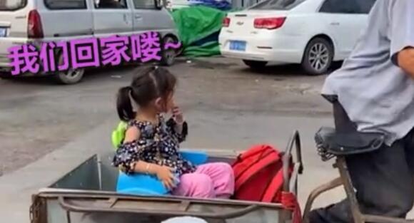 爷爷骑车接孙女放学自带小公主专用座椅 三轮秒变“南瓜马车”