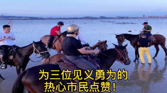 3男子骑马冲进海里救起12岁男孩 网友:大侠之风!