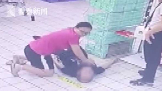 女护士带着1岁孩子逛超市 看到有人晕倒跪地施救