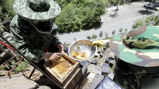 神农架养蜂人乘吊索上悬崖取蜜:纯正优质蜂蜜 常有黑熊偷吃